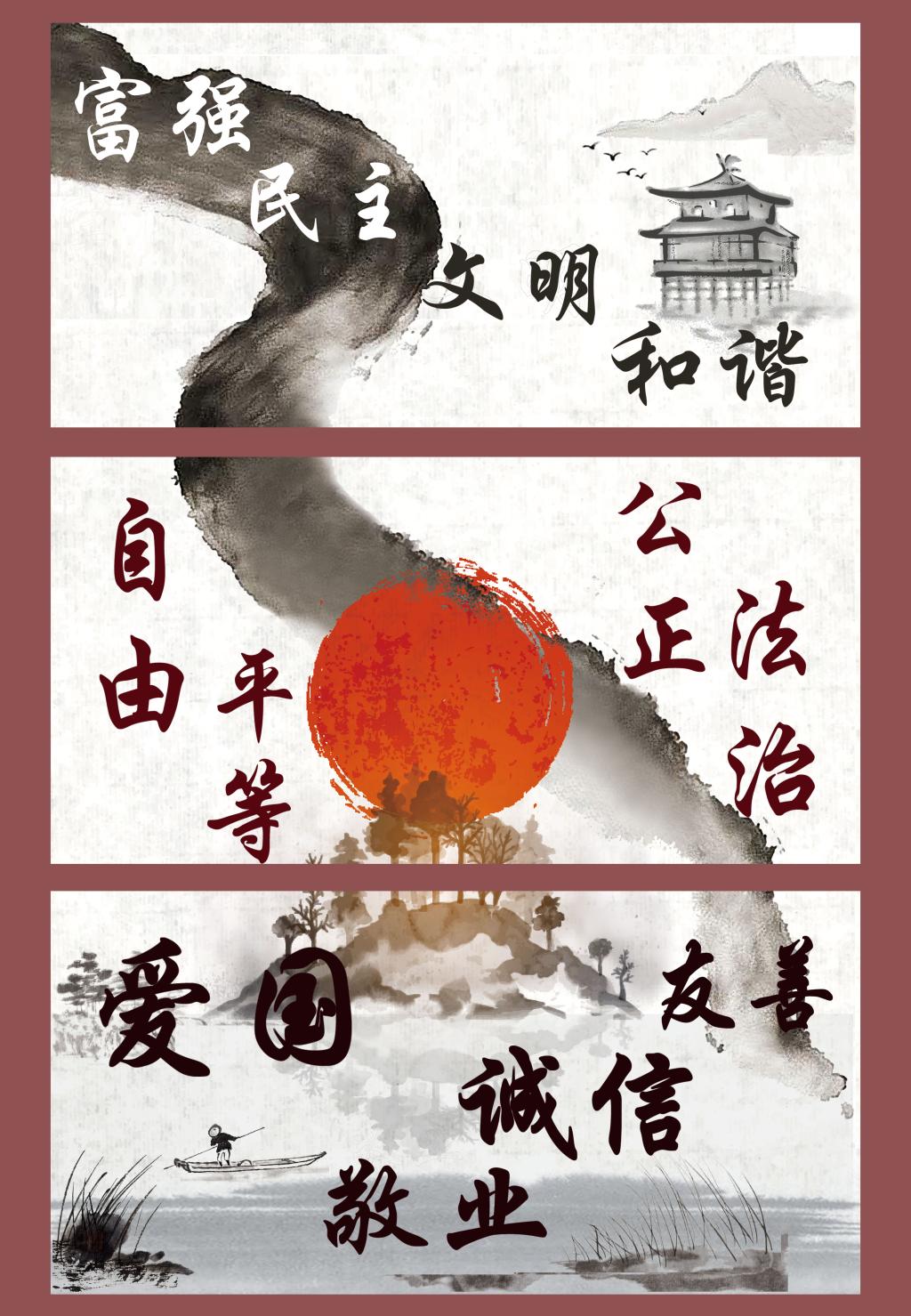 《多媒体信息处理技术》课程设有模仿型作品实验项目、创作型作品实验项目等,以上作品是学生利用平面设计软件Photoshop CS6,融合个人对于社会主义核心价值观的理解,利用点、线、面的设计原理,形成主题概念鲜明的宣传海报。课程将技术、创意和思政融于一体,锻炼学生平面表达能力,高质量完成图书封面设计、版式设计、插图设计等工作。