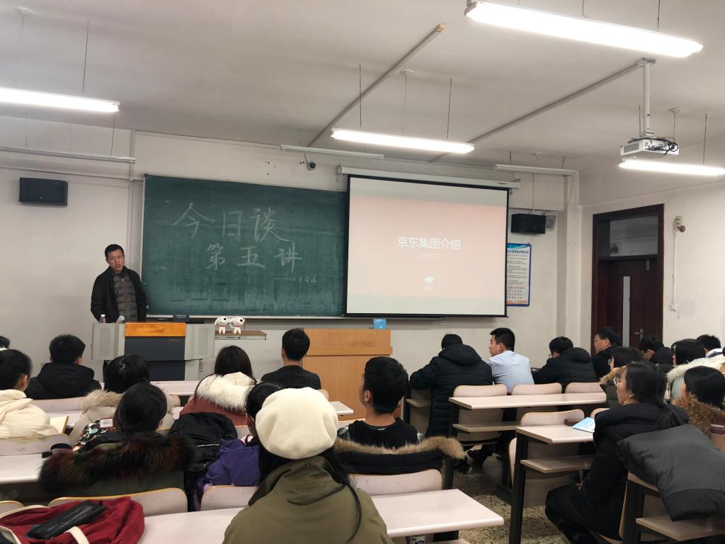 为加强信管学子对电子商务市场现状的了解,拓展对企业内部的发展战略的认识,yl6776永利集团于11月29日下午3:30在汇文楼255室举行“今日谈”系列活动第五讲,本次活动邀请到京东物流集团HRBP经理孙迎春女士作为主讲人,yl6776永利集团党总支副书记、副院长王法山老师,团委副书记王硕老师,以及学院2018级电子商务专业学生共同参加本次活动。