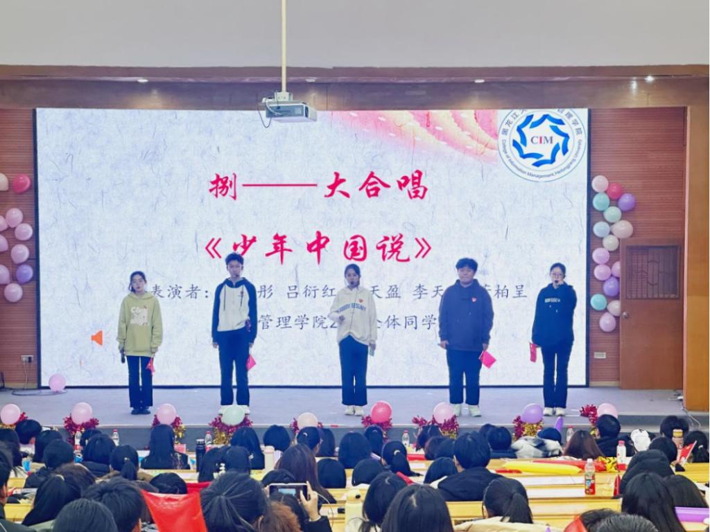 少年自当扶摇上,揽星衔月逐日光。大合唱《少年中国说》鼓励中华少年应顶天立地当自强,表达了黑大信管学子对报效祖国、争做栋梁的决心与毅力。“故今日之责任不在他人,而全在我少年”,信管学子定不负习近平总书记对青年的期待,坚定理想信念,志存高远,脚踏实地,勇做时代弄潮儿。