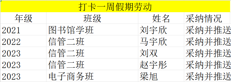 打卡一周假期劳动打卡活动完成名单如上表,可凭此加德育学分。