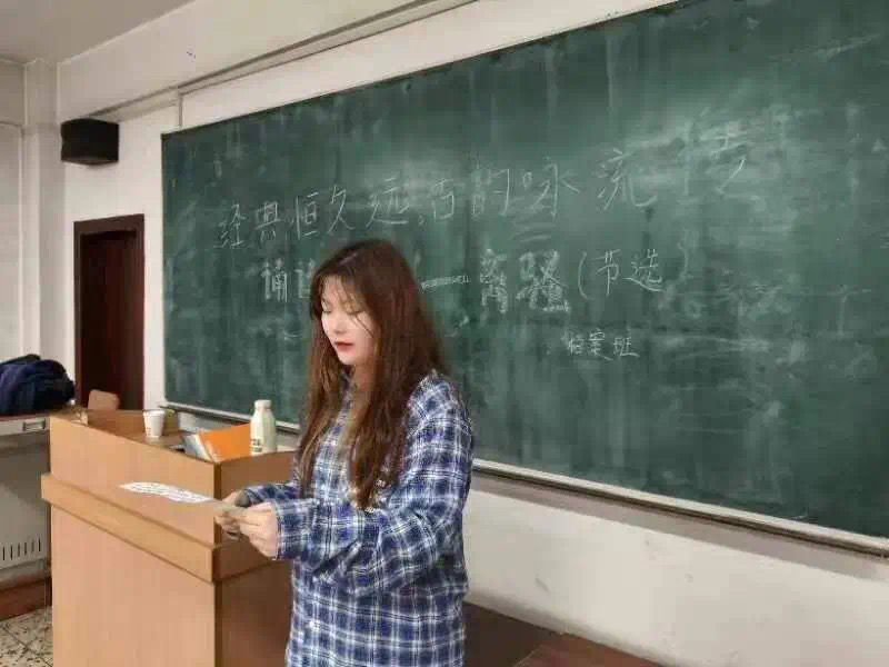 晚上6点30分,诵读活动准时开始。“惟草木之零落兮,恐美人之迟暮”。在学习委员的带领下,同学们以饱满的情感诵读《离骚》(节选)这首诗,体会诗词中的情感激荡,感受作者的幻境交替。这首诗是战国诗人屈原创作的。《离骚》于楚怀王二十四年、五年(公元前305年、公元前304年),即屈原被放汉北后两三年成文。汉北是指汉水从郢都向东流动的北面地区,现位于天门、应城、京山、云梦县,又称汉北云梦。怀王十六年,屈原起草宪令,主张联合对抗秦国,但在内外部势力的反对下除去左徒之职,后朝廷传唤,任命他出使齐国。怀王二十四年,秦楚合婚。二十五年,秦楚在黄棘结盟,秦归还楚国土地,屈原被放汉北。