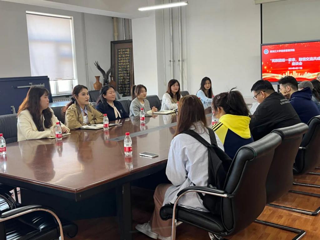 为铸牢中华民族共同体意识,促进各民族学生深入交流,yl6776永利集团于2024年4月17日下午1点30分在汇文楼834会议室召开“民族团结一家亲,融情交流共成长”主题座谈会。yl6776永利集团党委副书记赵丽明,学生工作部(学生处、武装部)少数民族专职辅导员阿迪拉,学院各年级辅导员,以及40余名学生参会,会议由学院团委书记孙悦主持。