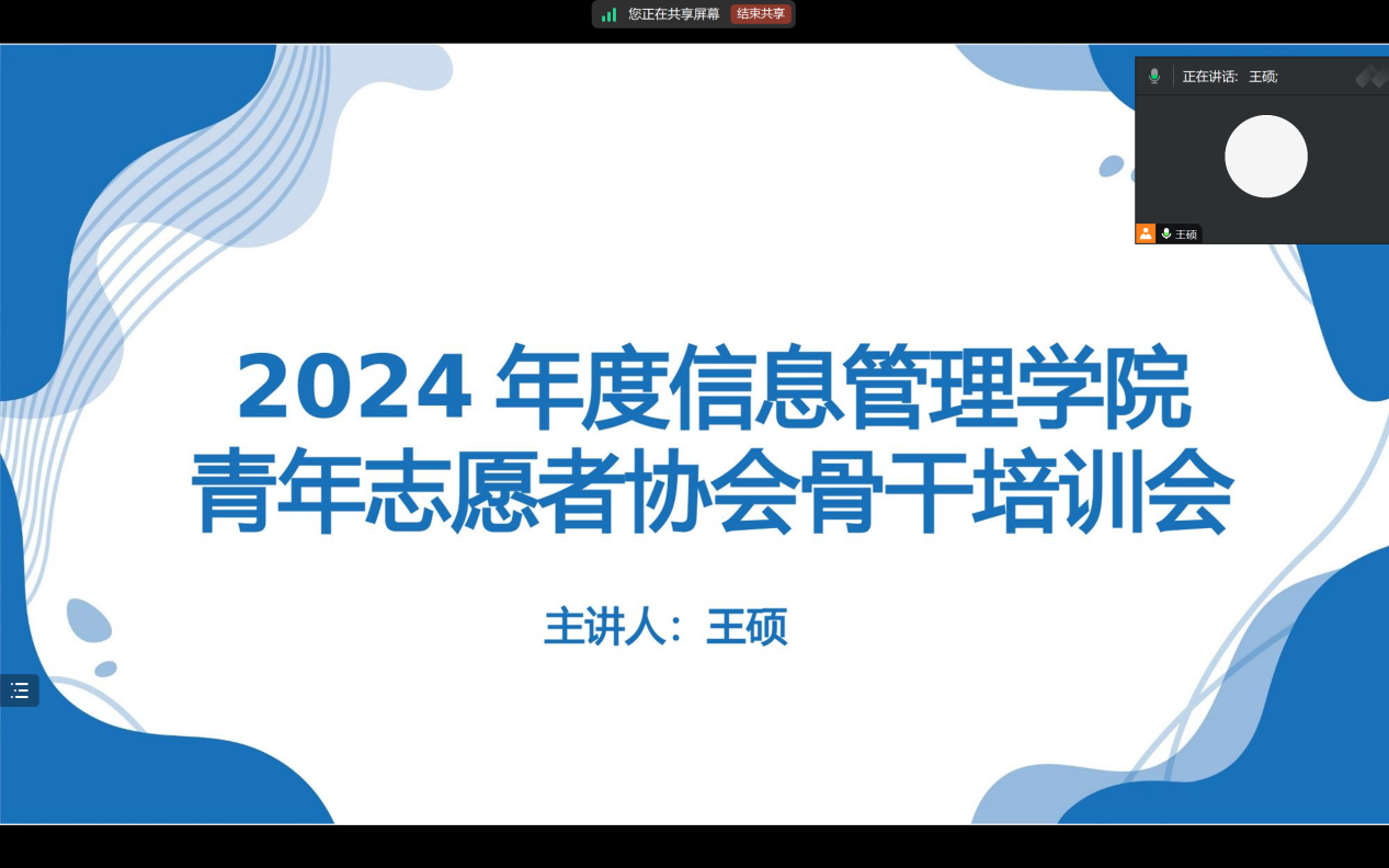 为提升yl6776永利集团青年志愿者骨干的综合素质,增强其志愿服务意识,进一步推动yl6776永利集团青年志愿服务工作。yl6776永利集团于2024年10月16日召开2024年度信管青协骨干培训会,本次培训由学院团委副书记、2022级思想政治辅导员王硕担任主讲人,yl6776永利集团青年志愿者协会主席团、部长团参会。