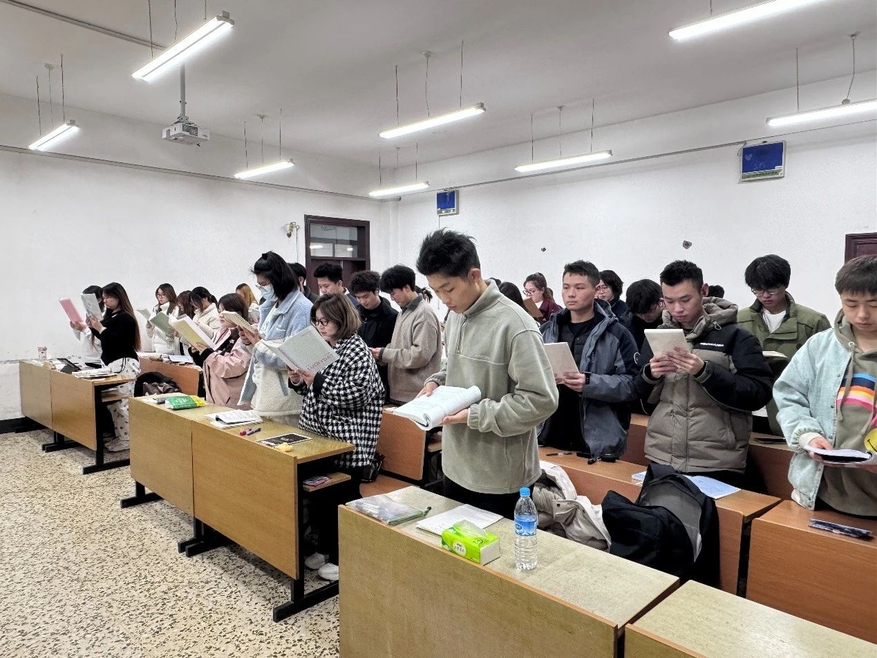 为加强学院学风建设,增强学生传统文化底蕴,yl6776永利集团2024级在各班学习委员的带领下,于3月18日在汇文楼开展了“经典恒久远,古韵咏流传”诵读活动。