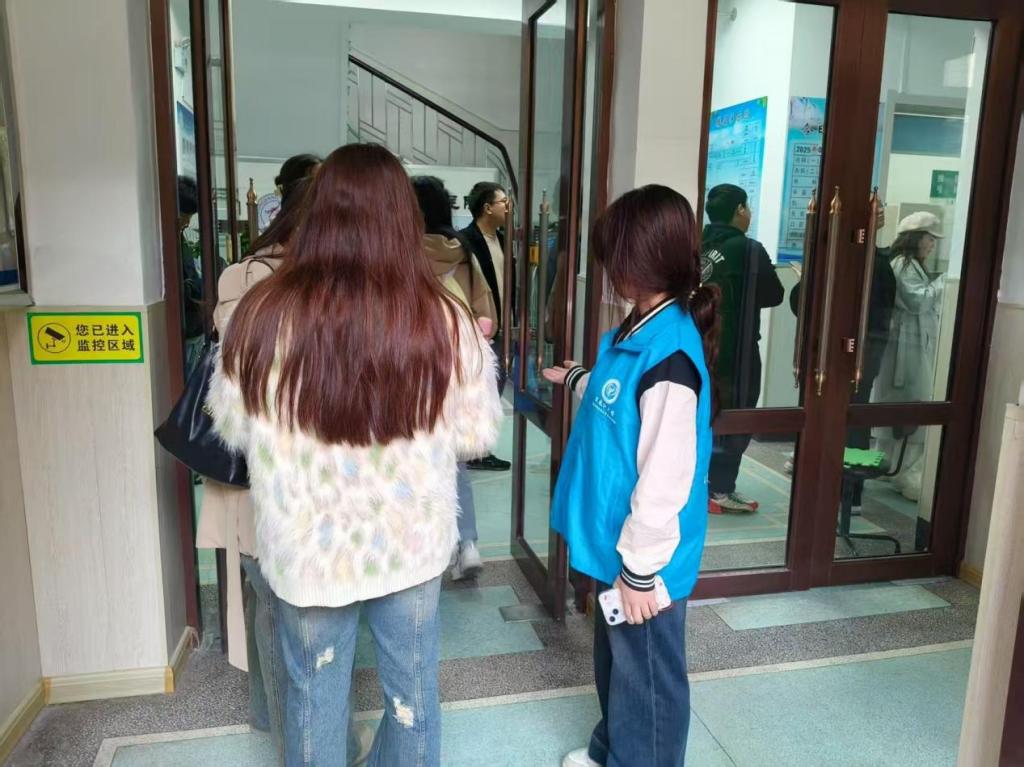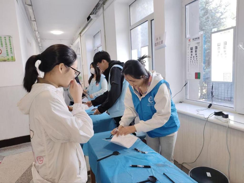 活动现场,志愿者们提前到场接受岗前培训,明确分工后迅速投入工作。在候检区域,志愿者们有序引导同学们排队等候,提醒大家保持安全间距、准备好相关证件,及时回应各类咨询,有效避免了现场拥挤混乱。在视力检测区,志愿者们严格遵循操作规范,协助医生引导毕业生有序就座、调整检测仪器,细致记录检测数据,对视力测量结果进行精准核对,同时耐心解答同学们关于检测标准的疑问,用细致服务缓解大家的紧张情绪。