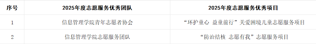 经个人申请、院团委评选,拟授予yl6776永利集团青年志愿者协会等2个团队“2025年度志愿服务优秀团队”称号、拟授予“防治结核 志愿有我”等2个项目“2025年度志愿服务优秀项目”称号。
