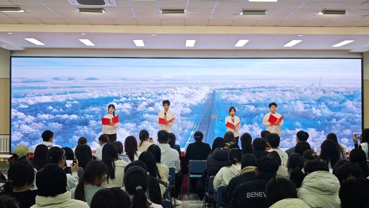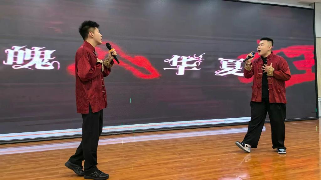 弦歌不辍映山河,少年意气著华章。歌曲《华夏》以悠扬旋律唱响“一湾海峡哺育两岸人家”的深情,从五千年文明底蕴中汲取民族气节,铸牢青年心中的中华民族共同体意识;诗朗诵《听,黑土地的青春回响》回溯从延安抗大俄文队北上足迹到当代青年扎根边疆的坚守,让红色基因在历史回响与青春誓言中代代相传。从文化根脉到黑土记忆,诠释了“何以华夏”的精神内涵与青春担当。