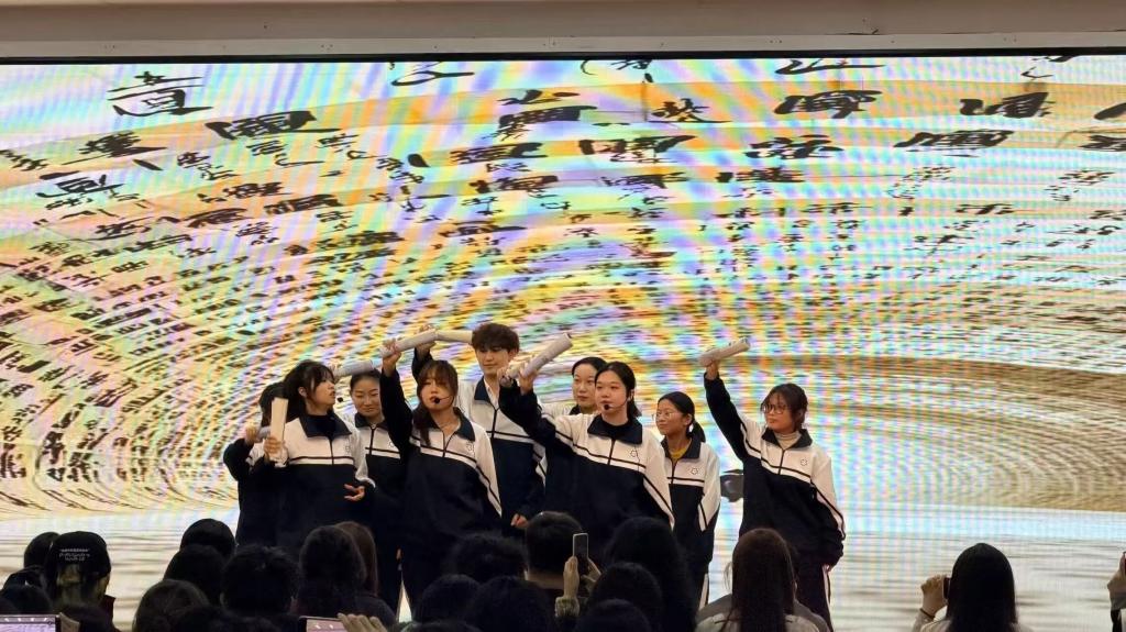 清音永续歌盛世,韶华立志耀九州。舞台剧《薪火》以深情演绎搭建时空桥梁,信管学子在致敬先辈的同时,更许下守护盛世的青春誓言;歌曲+手语舞《我爱你中国》将悠扬旋律化为指尖翻飞,以无声的赤诚与有声的告白,凝聚成“强国有我”的深切情怀;民族舞《漠上旋歌》将各民族交融共生的意象凝于肢体韵律,于舒展舞姿中传递民族文化底蕴,铸牢中华民族共同体意识;理论宣讲《卷启新章》以五卷精神图谱纵深串联起时代命题,以清晰脉络联结“铭记历史”与“青春有为”,引领青年将个人理想融入国家发展大局。