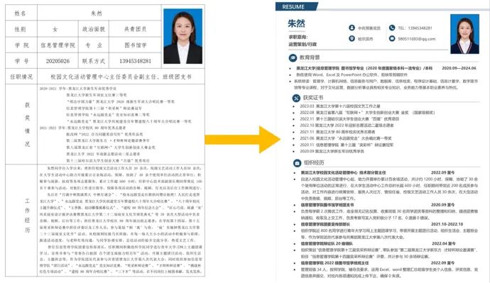 “一份漂亮的简历是成功入职的敲门砖。”要学会扬长避短,美化简历排版,运用字体的大小粗细来突出自身优势,一定要关注自己的简历和岗位的匹配程度:硬性要求包括入职的固定门槛,比如年龄、学历、专业、证书、学习成绩等。软性要求则可以归纳为岗位胜任力,主要通过实习工作经历、项目经历、奖项、能力、自我评价等来体现。