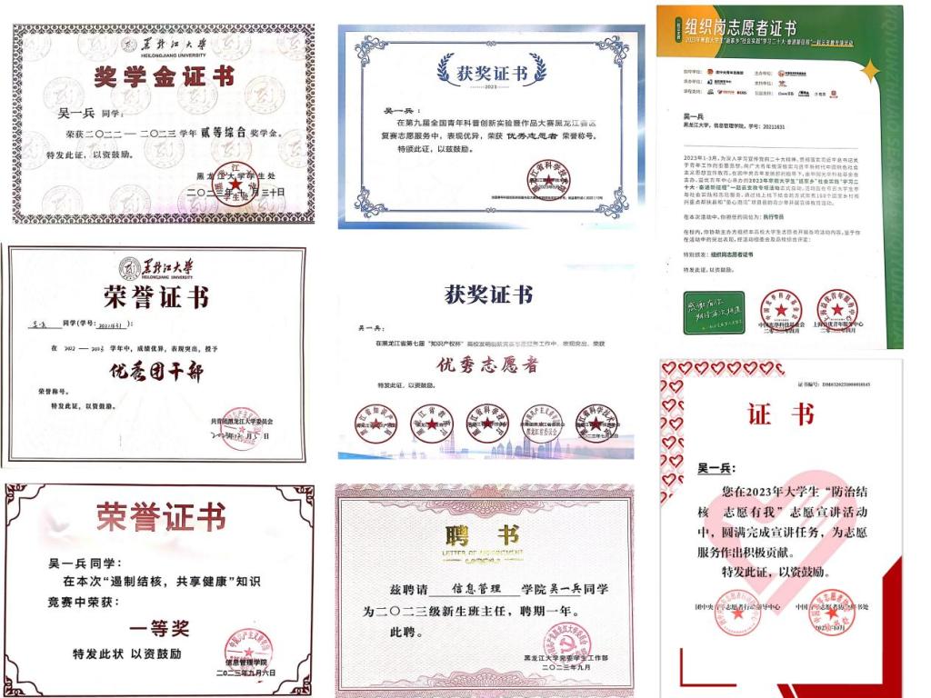 感谢学校和学院的鼓励与栽培,使我有机会在不同的学生工作岗位历练成长。在校青协和班级任职期间,积极开展并参与儿童福利院等7项志愿服务活动,带领团队获得第七届黑龙江省志愿服务项目大赛铜奖。同时根据党的二十大精神,结合习近平总书记视察黑龙江期间的重要讲话重要指示精神,积极组织班级同学开展主题团课学习10余次,以实际行动发挥党员先锋模范作用。依托各类主题活动,采取“线上+线下”相结合的宣传方式,提高班级同学的理论能力水平,班级青年大学习参与率保持100%。