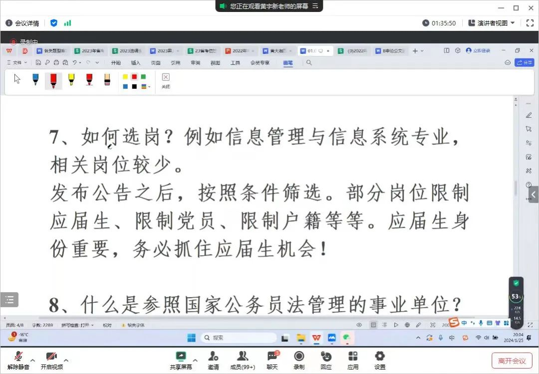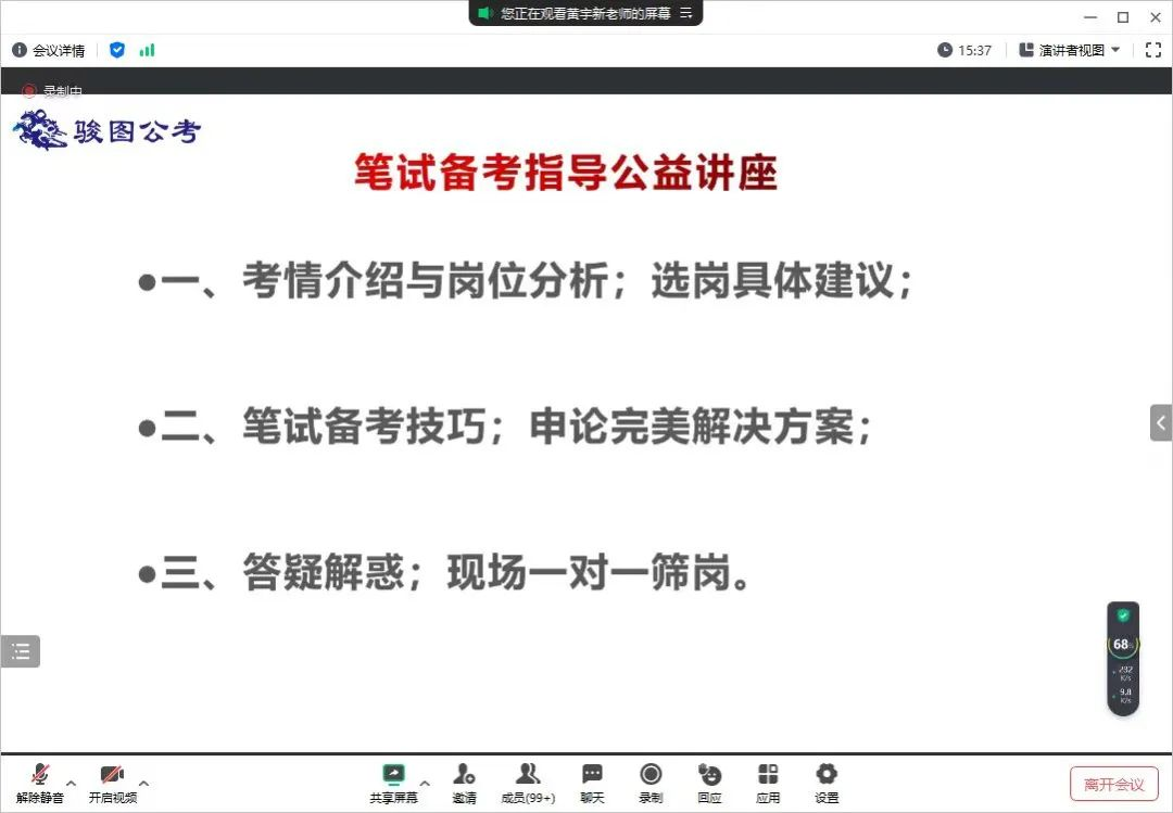 为进一步做好2024届毕业生就业工作,切实帮助毕业生加深对公务员、事业单位考试的认知,明确接下来省考、选调生及事业单位备考的注意事项,提高公考及事业编的上岸率,全力促进毕业生高效充分就业。yl6776永利集团于2024年1月25日在腾讯会议开展2024年公务员考试政策解读与备考指导讲座。本次讲座由yl6776永利集团党委副书记赵丽明老师主持,永利官网文学院副教授黄宇新老师主讲,yl6776永利集团全体辅导员,2024届本硕全体毕业生和部分低年级学生共同参会。
