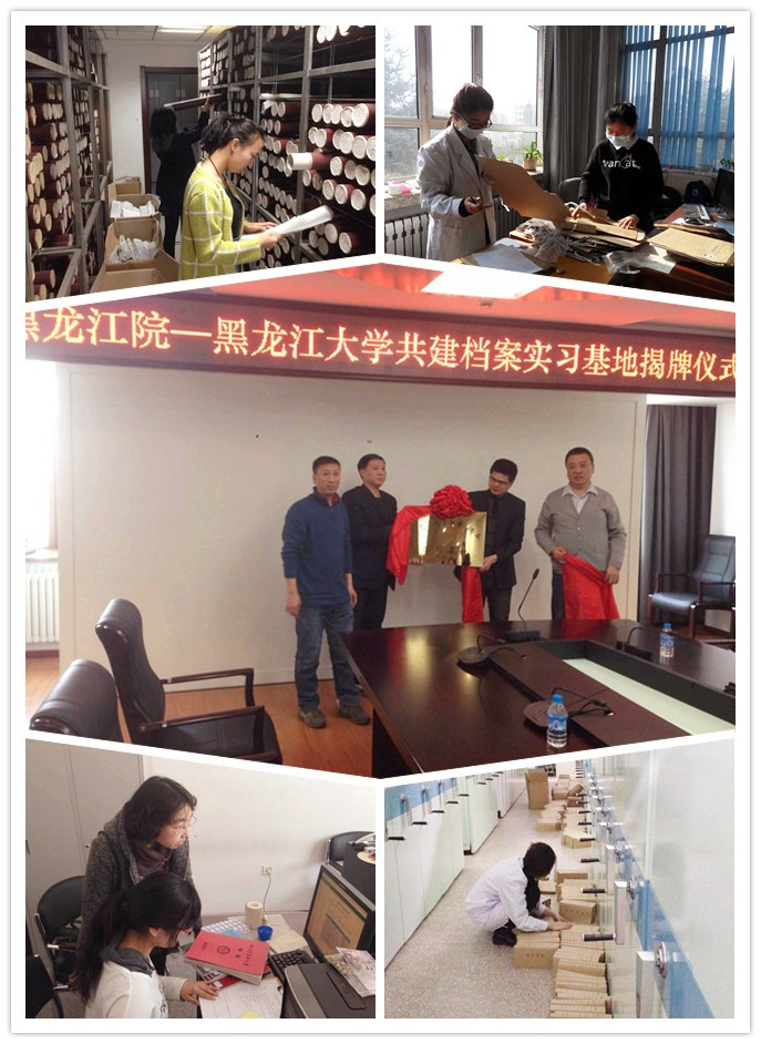 实习期间同学们接触到了行政档案、党群档案、会计档案、基建档案、刑事档案、设备档案、教学档案、底图档案、实物档案、科研档案、声像档案、出版档案等诸多档案种类。尽管因实习单位不同主要工作各有侧重,但大体上都包括文书档案的收集、整理、立卷归档、统计;档案信息数字化扫描、著录等工作。通过实习,大家对书本上的知识有了感性的认识,掌握了文件与档案管理的各个程序、步骤与方法,文件与档案管理业务的基本技能及应用技术,对档案管理各环节及各流程之间的相互关系有了充分的认识,达到了预期的实习目的。实习期间,还举行了我校与黑龙江省电力勘察设计研究院共建档案实习基地揭牌仪式,这一新实习基地的建立,使学生能够对设计图纸档案与数字档案馆有更加充分而明晰的认识与体验。