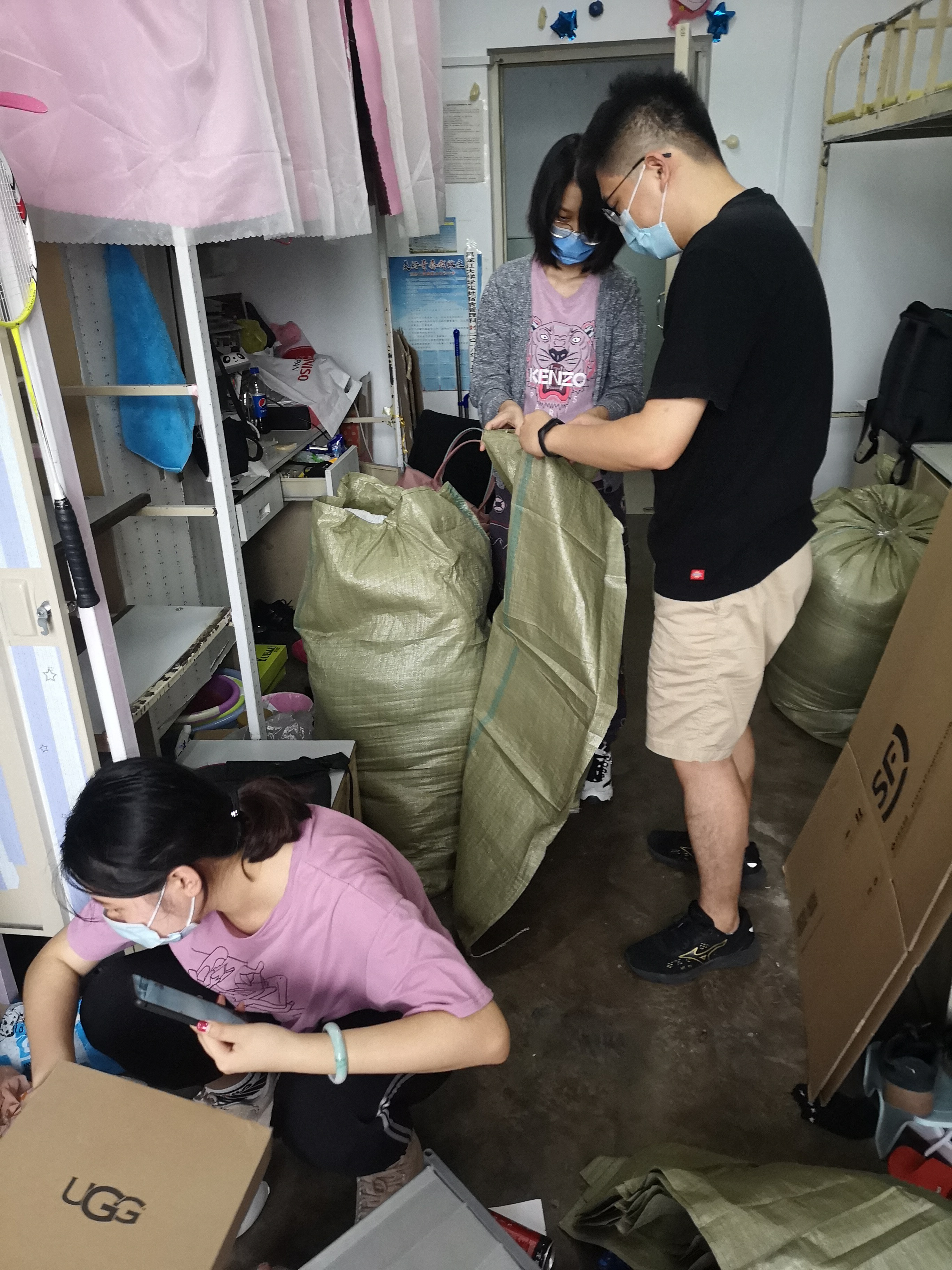 为了保护学生的相关利益,在现场通过视频连线的方式与学生进行沟通,确保学生实时了解、跟进整个整理过程,按照每名学生的具体要求,经反复确认核对后,对其物品进行打包、整理,以保证不出任何差错,并同时清理残余垃圾,保证毕业生寝室的干净整洁。在老师与学生的密切配合下,整理工作顺利有序、全面细致,真正做到让学生满意、放心。