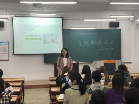 各年级辅导员老师到场聆听班会,并提醒同学们提高安全防范意识,做好自我保护,严格遵守学校针对疫情期间的特殊管理办法与规定。老师同时并嘱咐大家养成良好的卫生习惯、学习习惯,努力提高自我管理能力。