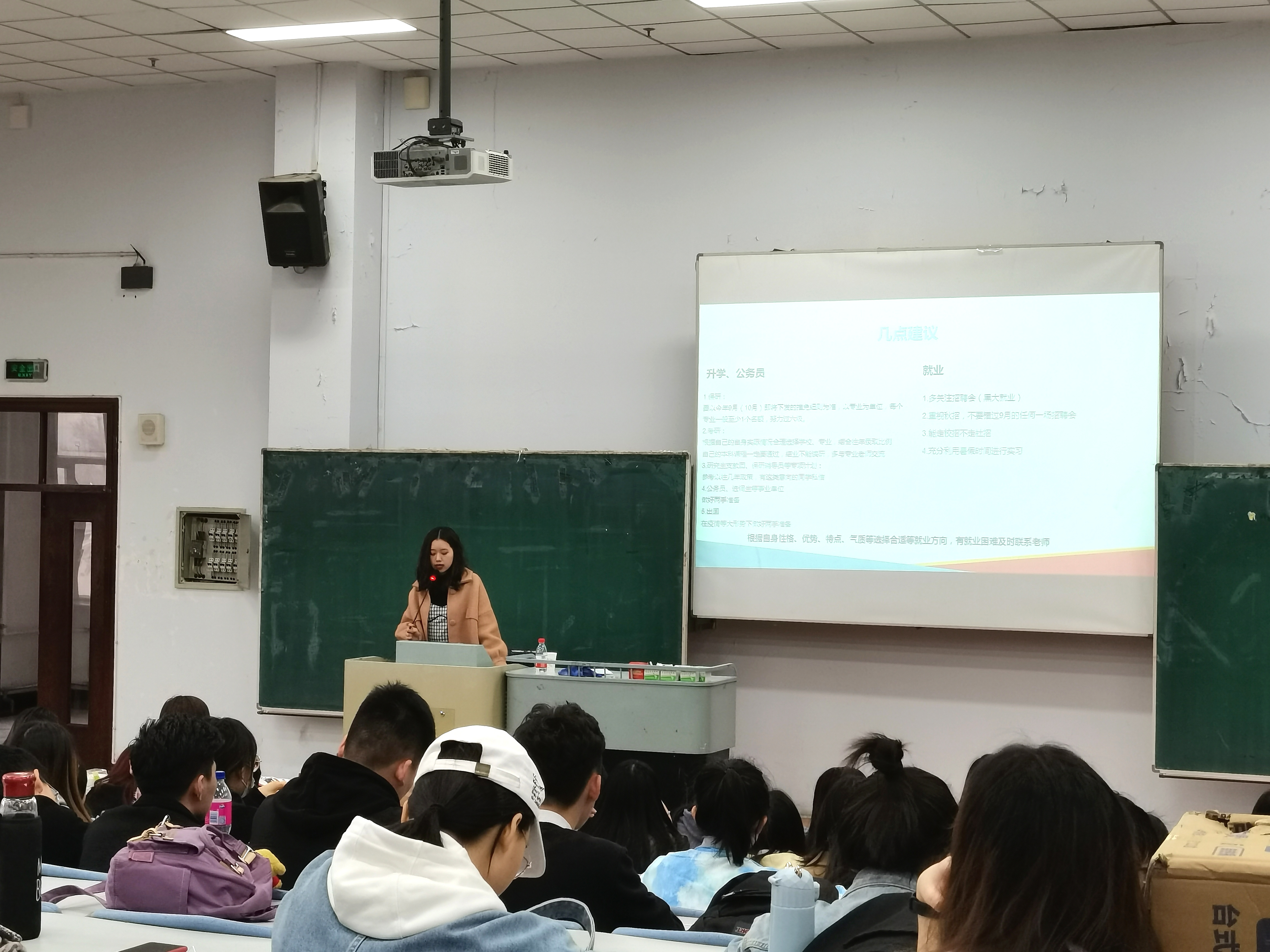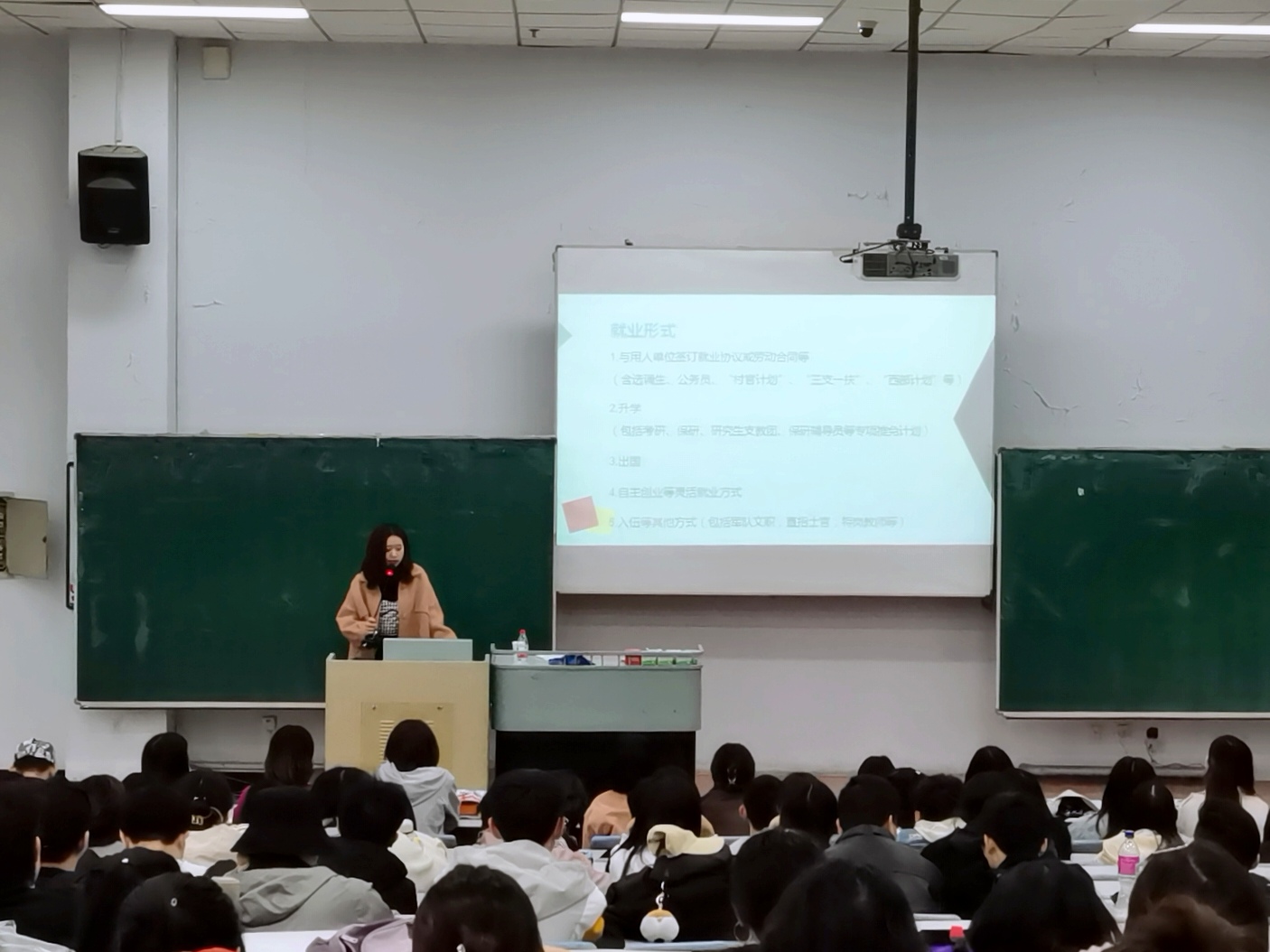 会议伊始,王硕老师就当下同学们可以选择的就业形式进行介绍,并结合学院开展的2022届毕业生就业意向第一次调查结果进行解读,指出同学们要结合个人自身实际情况和性格、优势、特点等明确自己的就业方向。