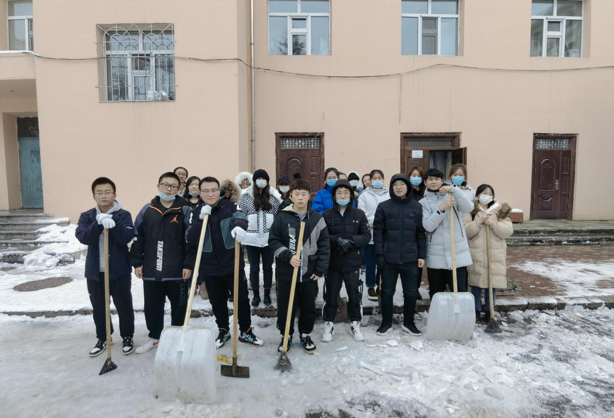 在这个最为寒冷的季节,新生们在各班生活班长的带领下按照学校要求,来到分配好的区域拿着铁锹、扫帚等工具从道路两端开始进行清理。大家分工明确,协作默契,成效明显,用自己辛勤的双手铲去了地面上坚硬的冰层,扫去了路中央紧压的积雪,给师生创造了一个安全的出行环境,减少了因路面湿滑而摔倒的风险。