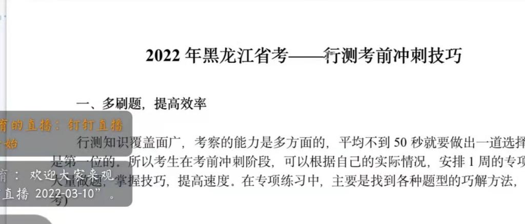 本次考前指导会主要针对省考的主要考试内容进行了分析讲解,为同学们提供了考前学习进度规划方面的建议,同时也介绍了一些考试的相关知识和解题技巧。