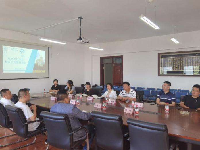 8月15日上午,yl6776永利集团校友企业家访企拓岗座谈会在汇文楼834举行,本次座谈会由学院党委书记马海群主持,学院院长黄丽霞,副院长周丽霞,副院长任越,信管专业系主任刘甲学,学院教务员张红瑜,研究生秘书祖岭,辅导员孙悦、王硕、郭曦萌参加本次会议,会议邀请了上海市浦东新区慧科创发展中心执行主任唐守利,路贸俄罗斯商品贸易中心副总经理汪海丰,爱售(上海)网络科技有限公司总经理王晓伟共同重温母校情怀,开展校企合作。