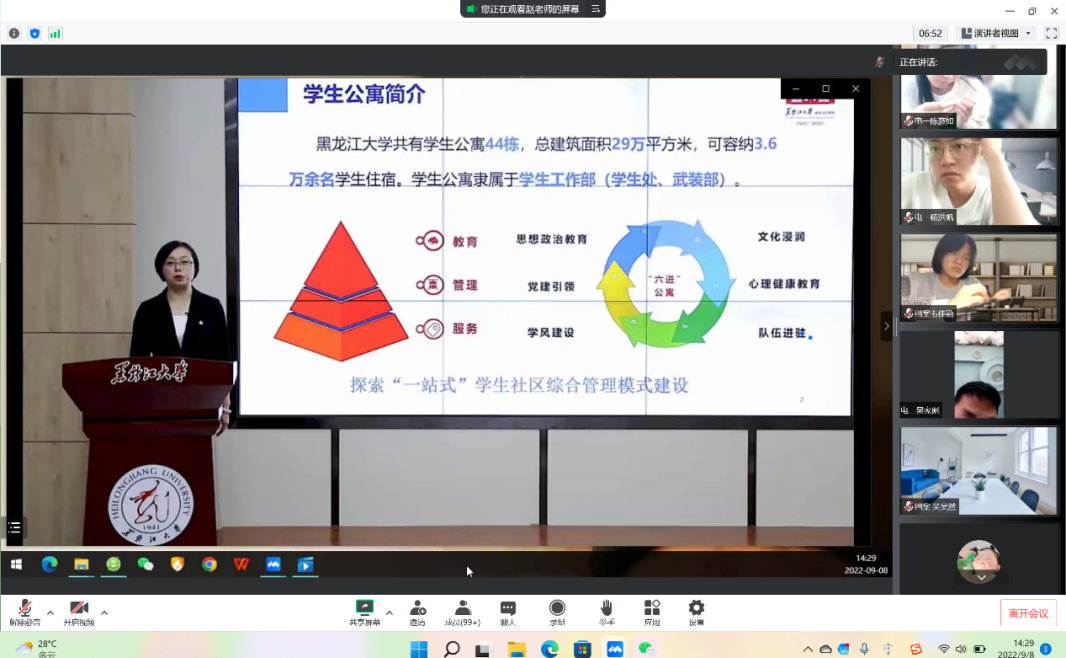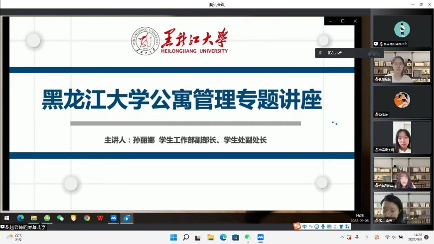 寝室作为我们的第二个“家”,是我们生活、休息、学习的重要场所,为帮助2022级新生树立宿舍安全防范意识,yl6776永利集团于2022年9月8日下午15:30通过腾讯会议开展了公寓安全管理专题讲座。学生工作部副部长、学生处副处长孙丽娜老师担任主讲人,yl6776永利集团团委副书记、2022级辅导员王硕老师及2022级全体新生参加本次活动。