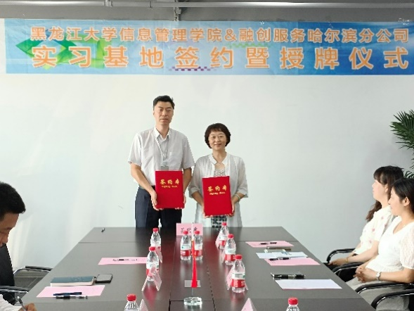 最后,黄丽霞院长与融创服务集团华北大区哈尔滨分公司人力行政负责人顾博特签订校企合作协议,马海群书记与融创服务集团华北大区哈尔滨分公司总经理刘树荣参与授牌仪式。
