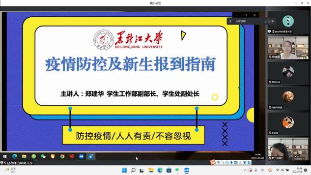 金秋九月,叠翠鎏金。新学期初始,疫情形势却依旧严峻。为提高同学们的疫情防护意识,yl6776永利集团于2022年9月8日下午15点开展防疫宣传教育活动,本次活动由学生工作部副部长、学生处副处长郑建华老师担任主讲人,yl6776永利集团团委副书记、2022级思想政治辅导员王硕老师及2022级全体新生参加本次活动。