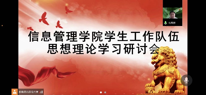 会议中,马海群老师领学《习近平在全国高校思想政治工作会议上的讲话》、《习近平在全国教育大会上的讲话》等习近平总书记的重要讲话和重要指示批示精神,并围绕思想理论学习和学生工作业务培训两大主题带领辅导员老师进行具体分析讨论,要求各辅导员老师能够结合实际,对学生思想、生活、学习等方面存在的问题和困难进行调研。科学研判、积极协调、分析举措、化解风险。同时更要不断提升自身思想政治水平,积极学习习近平总书记重要讲话精神,用理论指导实践,从而做到解决问题,提升自身工作能力。