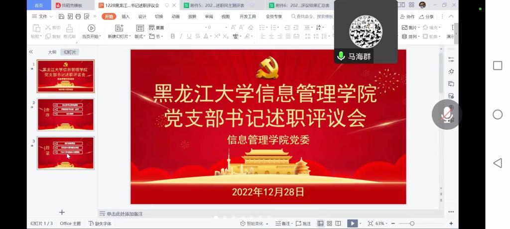 为深入学习贯彻习近平新时代中国特色社会主义思想和党的二十大精神,持续贯彻落实省第十三次党代会精神,扎实推进“能力作风建设年”活动,根据《关于开展2022年度党组织书记抓基层党建述职评议考核的通知》要求,信息管理学院党委于12月28日14点通过腾讯会议线上召开了2022年度党支部书记抓基层党建述职评议会。会议由学院党委书记马海群主持,学院党委委员、各党支部书记及党员代表18人参加了本次会议。