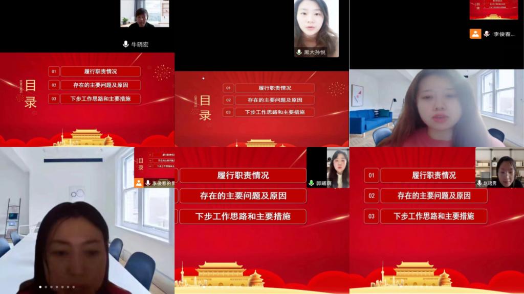 会上各党支部书记紧扣突出学习贯彻习近平新时代中国特色社会主义思想和党的二十大精神情况;突出落实基层党建工作重点任务情况;突出落实基层党建责任制和全面从严治党要求情况;突出抓好有关问题整改情况等述职重点内容,从履行职责情况、存在的主要问题及原因、下步工作思路和主要措施三个方面进行全面阐述。学院现有7个党支部,其中6个党支部书记进行了现场述职:教工第一党支部书记牛晓宏;教工第三党支部书记朱天梅;2019级学生党支部书记孙悦;2020级学生党支部书记郭曦萌;2021级学生党支部书记赵珺男;2022级学生党支部书记王硕。教工第二党支部书记张涛代表党支部进行了书面述职。