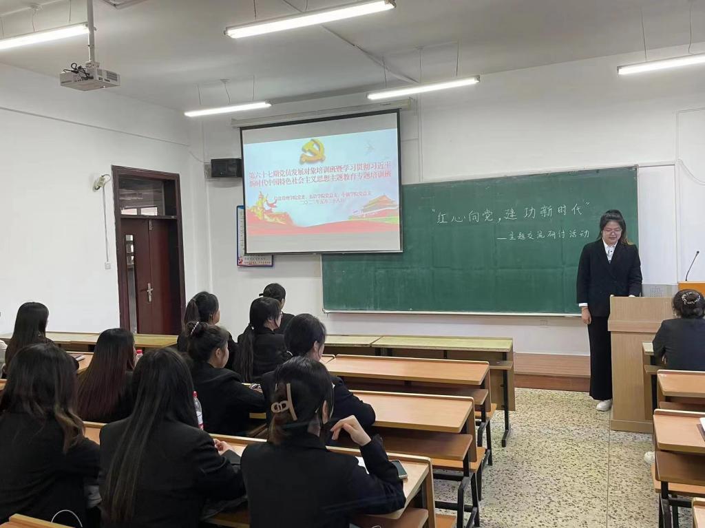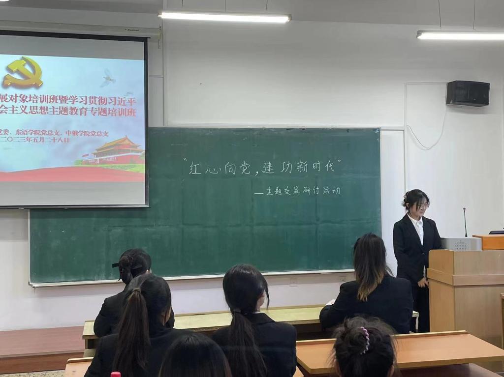 为深入学习党的二十大报告和习近平总书记重要讲话精神,5月28日晚,由yl6776永利集团、东语学院、中俄学院组成的第十八学习小组开展了第六十七期党员发展对象培训班暨学习贯彻习近平新时代中国特色社会主义思想主题教育专题培训班——交流互学,在汇文楼148教室组织了交流研讨活动,研讨主题为“红心向党,建功新时代”。研讨由中俄学院培训班学习小组组长郭云鹤主持。