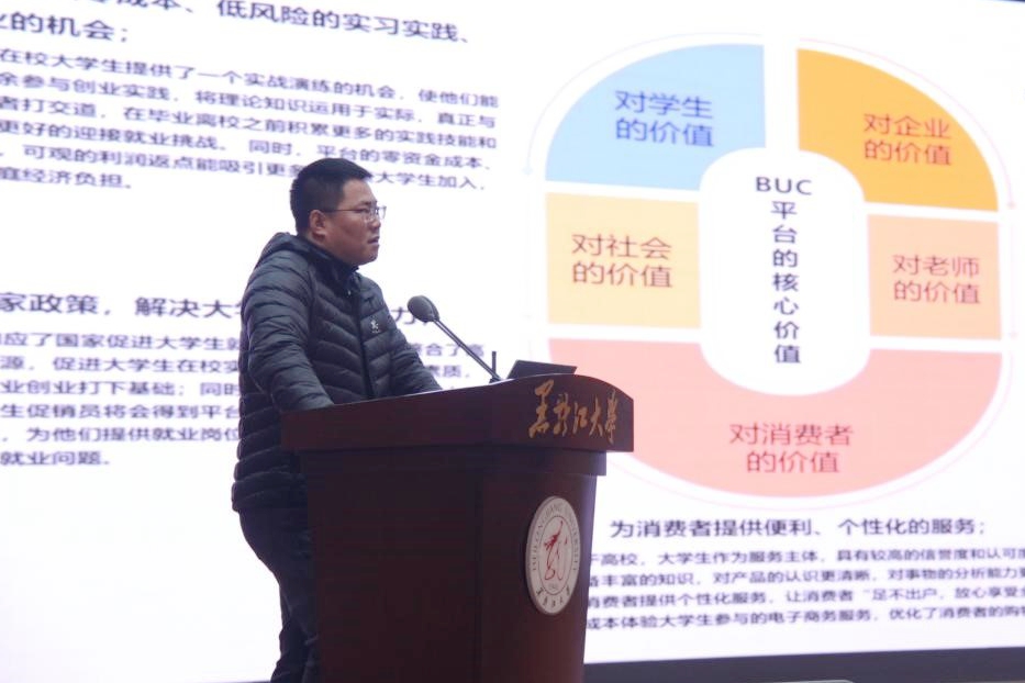 游文超董事长以 “全链路实战赛保障服务,让师生参赛更轻松”为题,详细介绍了BUC、乡村振兴、直播电商实战赛保障服务,并分享了实战赛优秀案例。