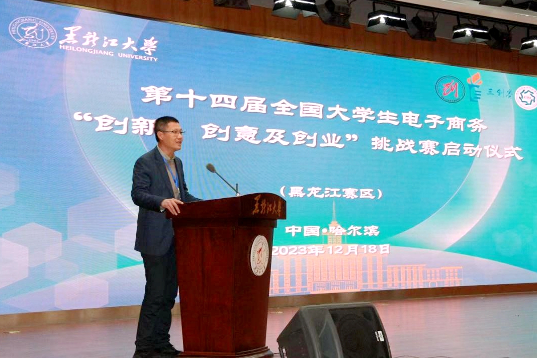 12月18日上午,第十四届全国大学生电子商务“创新、创意及创业”挑战赛黑龙江赛区启动会暨教育部电子商务虚拟教研室基地授牌仪式及校赛负责人和骨干教师培训会在永利官网主楼一楼报告厅举行。副校长井立强教授,教育部电子商务类专业教学指导委员会副主任委员、三创赛组委会主席、教育部电子商务专业虚拟教研室建设负责人、西安交通大学李琪教授,教育部电子商务类专业教学指导委员会副主任委员、三创赛组委会副主席、厦门大学彭丽芳教授,三创赛组委会副秘书长、浙江师范大学电子商务研究与发展中心邹益民主任,三创赛组委会副秘书长、武汉惠赠你网络科技有限公司董事长游文超先生,三创赛黑龙江省赛区赞助商、省大学生创业融资担保有限公司副总经理席艺铭女士,我校教务处、yl6776永利集团、创新创业教育学院相关负责同志,黑龙江省校赛负责人和骨干教师、参赛学生代表参加会议。会议由我校创新创业教育学院院长孙连刚主持。