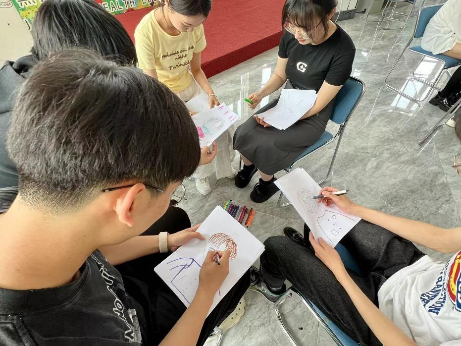 在完成小组介绍后,王硕老师带领同学们进入本次团体心理辅导的三个核心环节。在“未来的我”环节中,同学们用水彩笔画出自己的未来自画像,通过绘画的方式表达了同学们的情感和内心世界,共同畅想未来,分享个人梦想与期望,激发学习动力。