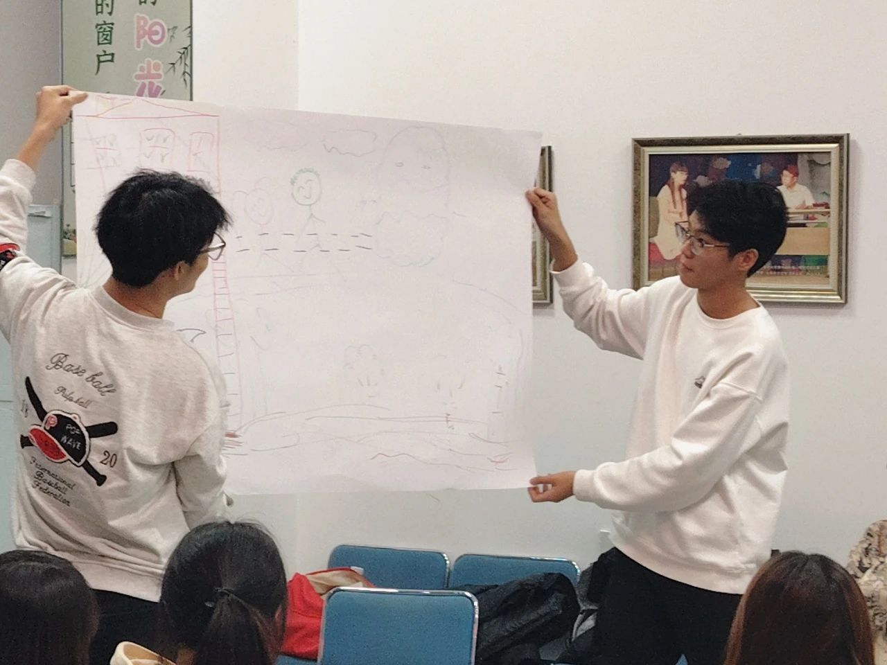 在这之后,令人期待的环同心绘画环节精彩登场。各小组围聚在一起,在不能进行语言交流的情况下,共同投入到主题画的创作中。大家心有灵犀,用画笔传递着彼此的创意与情感。完成创作后,各小组代表对画作含义进行阐释,其他小组的同学纷纷提问交流。这个环节进一步提升了团队的协作能力,让同学们在无声的合作中绽放出独特的艺术魅力,为本次活动增添了浓墨重彩的一笔。