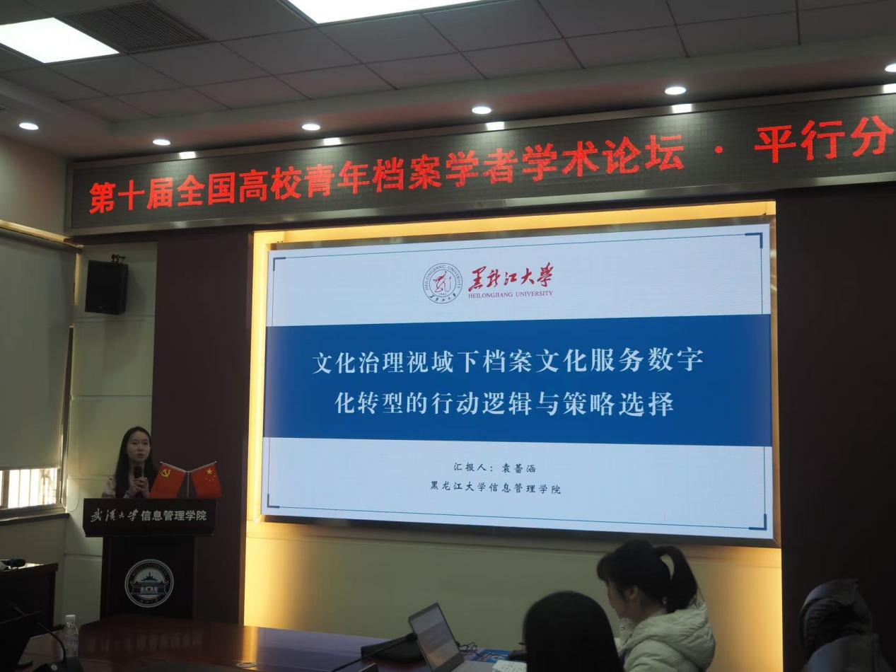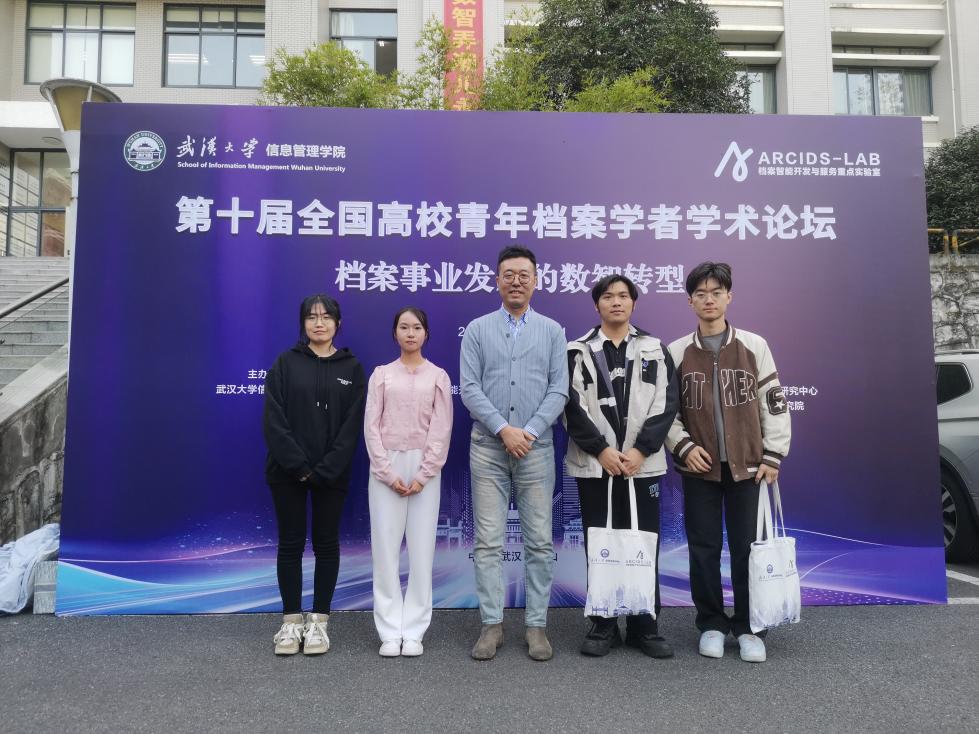 2024年11月29日至12月1日,由武汉大学yl6776永利集团主办,档案智能开发与服务国家档案局重点实验室承办的第十届全国高校青年档案学者学术论坛在武汉大学成功召开。论坛同期举办武汉大学档案学科重建40周年暨数智时代档案学专业人才培养学术研讨会。武汉大学党委副书记楚龙强,国家档案局原副局长、中央档案馆原副馆长付华,湖北省档案馆副馆长刘晓春,中国人民大学教授张斌等致辞,中国人民大学原常务副校长、国家一级教授冯惠玲作主旨报告。来自档案学界、业界的200多位专家学者和学生代表与会。我院任越教授与徐海静副教授带队,档案学专业硕士研究生袁蕾涵、王梓萱、李泊泳、谭科铭共6人参加本次论坛。