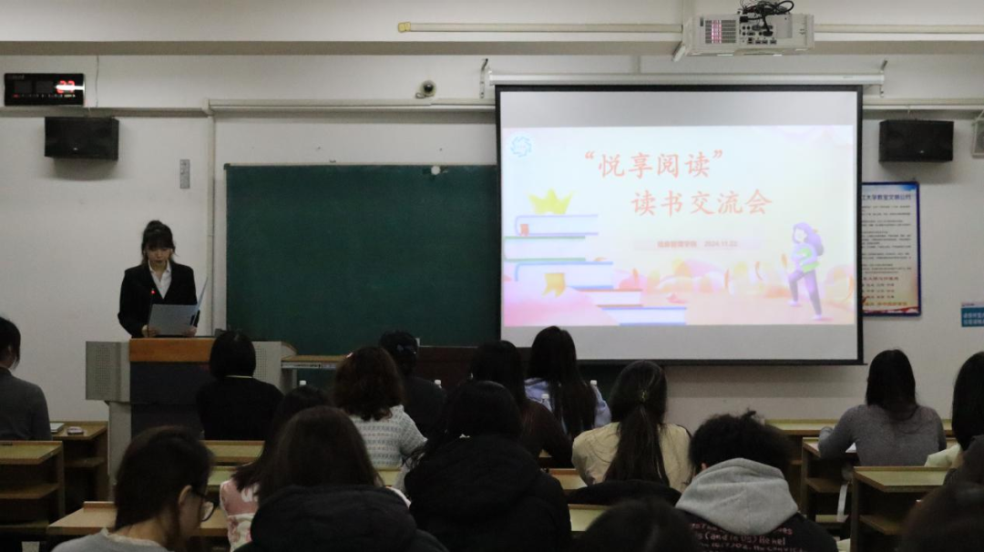 为提高同学们的阅读热情,营造良好的读书氛围,yl6776永利集团于2024年11月22日18:30在汇文楼418教室举行11月“悦享阅读”读书交流活动,yl6776永利集团党委副书记赵丽明,信息管理管理学院副教授、活动特聘指导教师王明慧,yl6776永利集团团委副书记王硕,yl6776永利集团学生会执行主席张嘉瑶、罗羽菲参加本次活动并担任评委。本次交流活动由2023级信息管理与信息系统专业孙玮琪主持,来自两个年级的四位同学积极参与并作出分享。