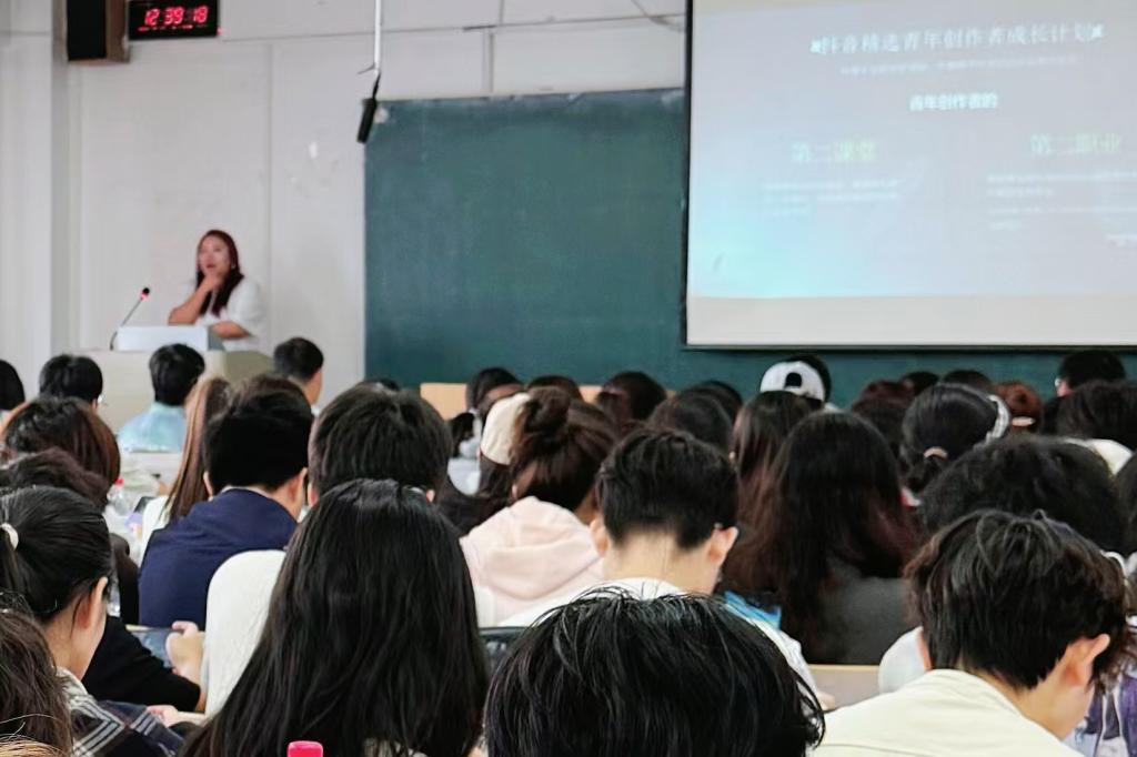 活动伊始,电子商务专业系主任邹纯龙致欢迎辞,对抖音集团培训讲师的到来表示热烈欢迎,并勉励同学们把握平台资源、积极投身内容创作,在真实社会需求与专业实践中锤炼能力。随后,抖音集团“青年创作者成长计划”培训讲师张丽博系统介绍了“青年创作者成长计划”项目,并就抖音集团为青年创作者提供的免费多维支持作了全面讲解。