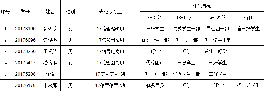 根据《学生工作部:关于评选永利官网2021届优秀毕业生的通知》,按照《永利官网学生管理规定》、《永利官网本科生先进个人、先进集体评选办法》第三章第十一条、《永利官网研究生先进个人、先进集体评选办法》第三章第十一条规定的评选比例、评选条件和评选程序要求,经学院评选,拟推荐以下6名同学为永利官网2021届优秀毕业生,现将评审结果公示如下,公示时间:2021年5月17日-5月21日,公示期为五个工作日。