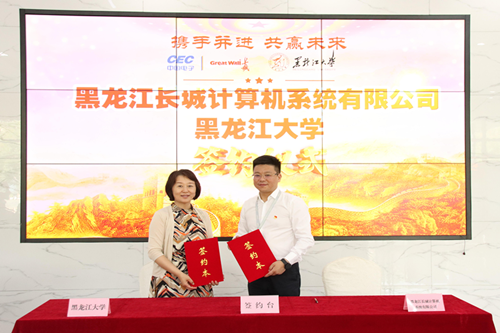 yl6776永利集团黄丽霞院长、赵建平副院长等代表学校与黑龙江长城副总经理郑大庆、李瑞东分别签署校企合作协议、基地共建协议。黑龙江长城计算机系统有限公司与yl6776永利集团举行校企合作实习基地授牌仪式。yl6776永利集团教工第二党支部书记和黑龙江长城计算机系统有限公司党支部书记共同签署了党支部共建协议。此次协议的签署,将会进一步加快校企双方在人才培养、专业共建等领域的合作步伐,从而为双方在今后的合作发展道路上实现共赢,进一步深入开展校企合作,践行“我为群众办实事”。