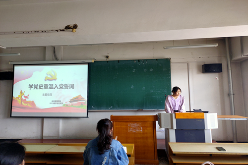 为深入贯彻落实习近平总书记系列重要讲话和文章精神,不忘初心,坚定理想信念,明确大学生党员的责任使命,做到知史爱党,知史爱国,yl6776永利集团于2021年6月17日,在汇文楼563教室开展以“学党史重温入党誓词”的为主题的党日活动。本次活动由学院2019级学生党支部书记王文静同学主持,学院团委副书记、2019级辅导员孙悦老师出席本次活动,yl6776永利集团2019级全体学生党员参与活动。