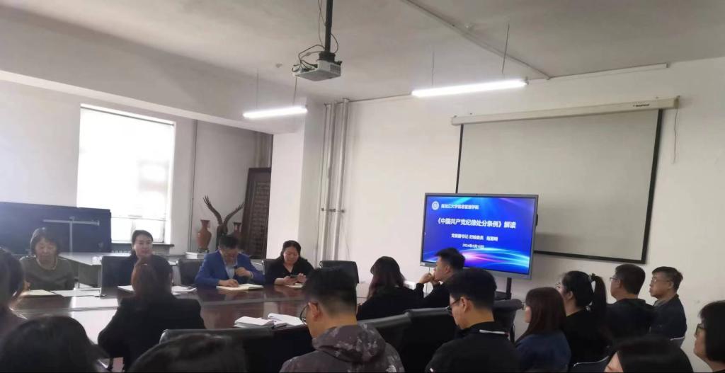 党课之后,学院党委纪检委员、副书记赵丽明从《中国共产党纪律处分条例》新增和修改的重点条文对《条例》进行了解读。